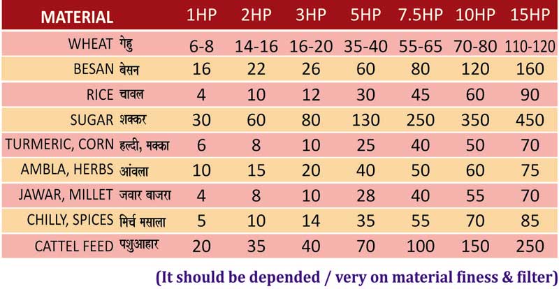 GRINDING AVERAGE KG. PER HOUR (APP)